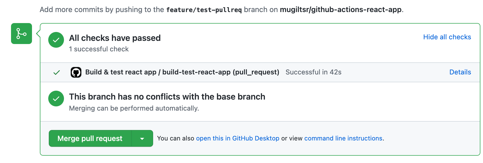 When you create PR, this workflow will be executed and you can see that check in Github console as shown below