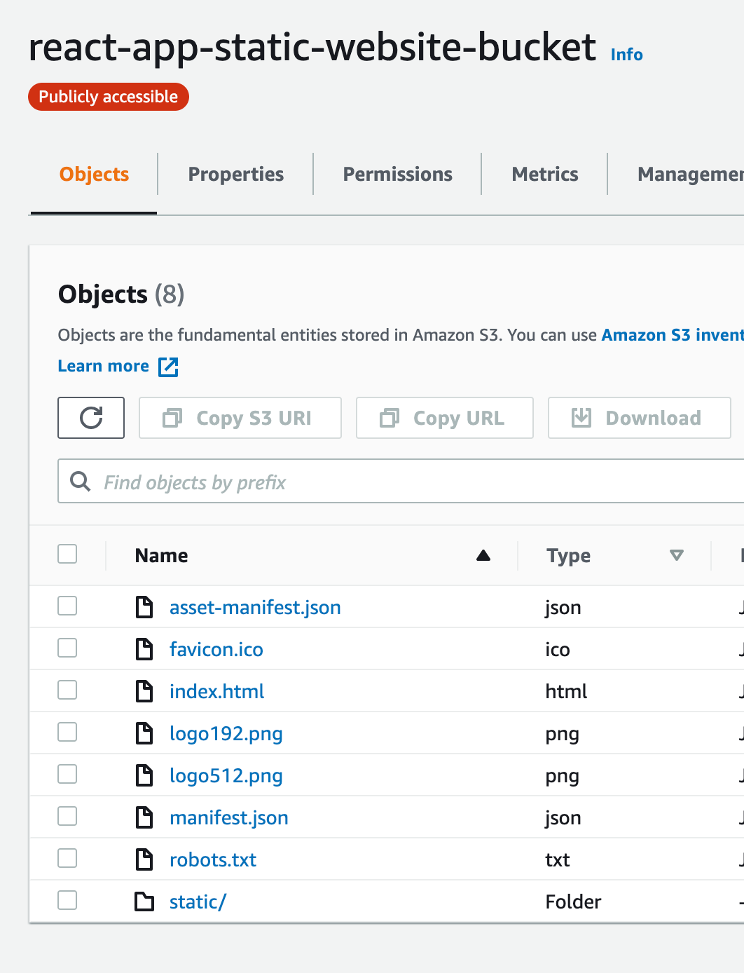 - At the last step, we're running sync command - to deploy react app build directory to S3 bucket