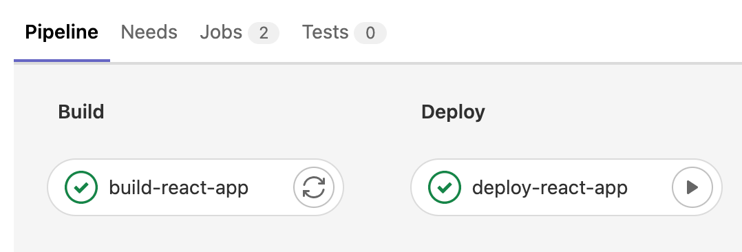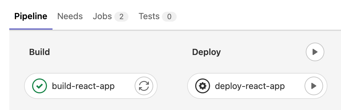 The build job is completed successfully and the deploy job is waiting to be triggered manually. When you click play button, it will be executed as shown below