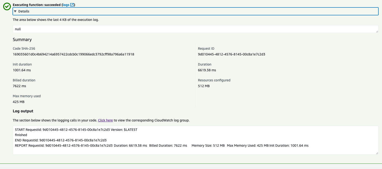 Running the lambda function:
