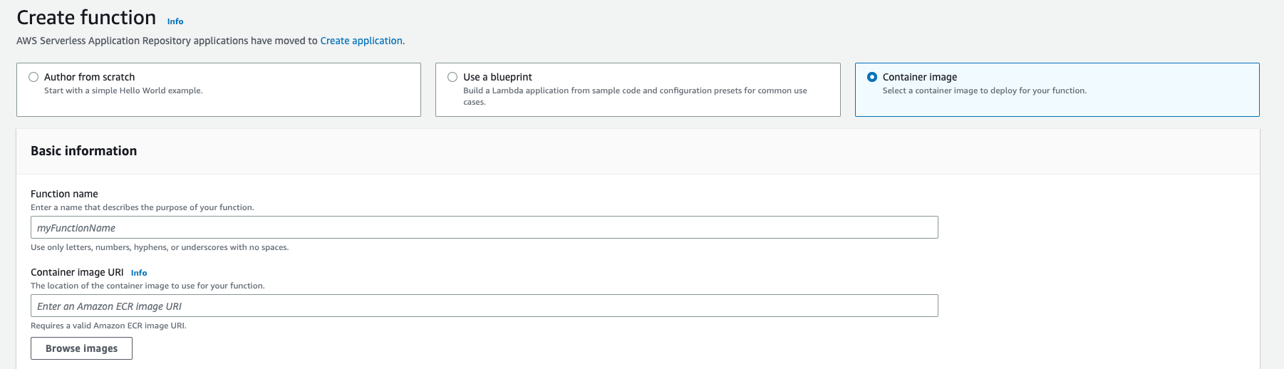 You can enter the function name and click "Browse Images" to select the image.