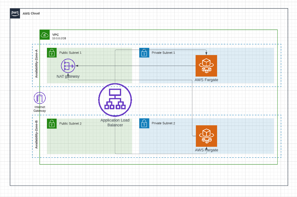 Below is the high-level architecture diagram for hosting our dockerized application in AWS Fargate.